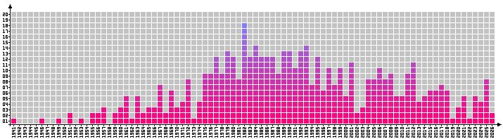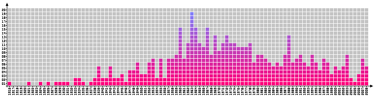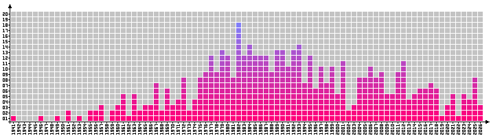1963 med inte mindre än 19 stycken, bäst av dem är Thomas Eriksson med 2.32, Bengt-Göran Enström med 2.21 och Magnus Svensson med 2.19. 1960, 1964 och 1967 föddes 15 stycken och 1969, 1972 och 1988 föddes det 13 stycken per år som kom att hoppa minst 2.00. Först födde på listan är Åke Ödmark, den 29 oktober 1916. Senast födde är Elvin Rahm, den 16 juni 2008. Alltså ett spann på knappt 92 år. Något som ger ett snitt på lite drygt fem tvåmetershoppare/år. |