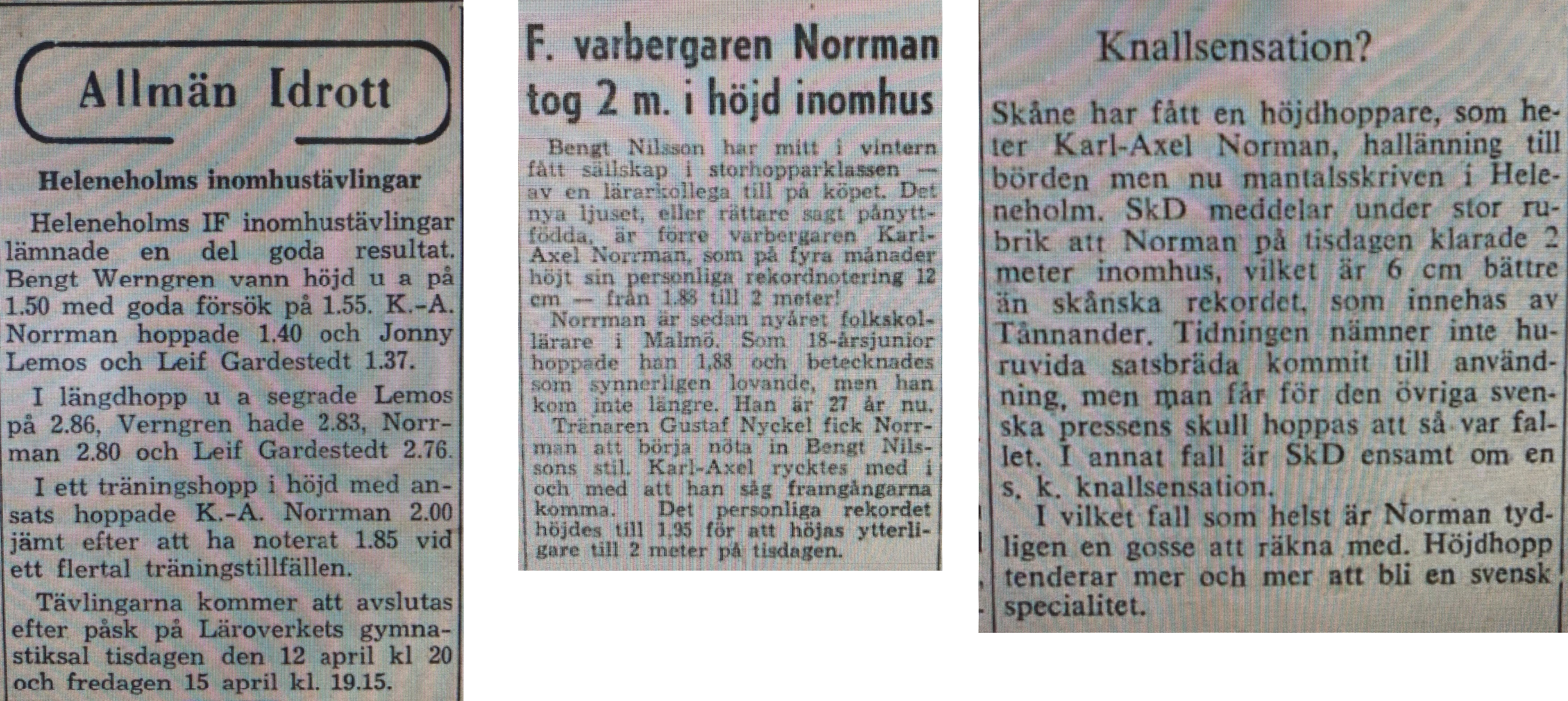 | * | 2.00 | i | Karl-Axel Norrman (länk) | Heleneholms IF | 21 jan 1928 | Malmö, SWE | 5 apr 1955 |